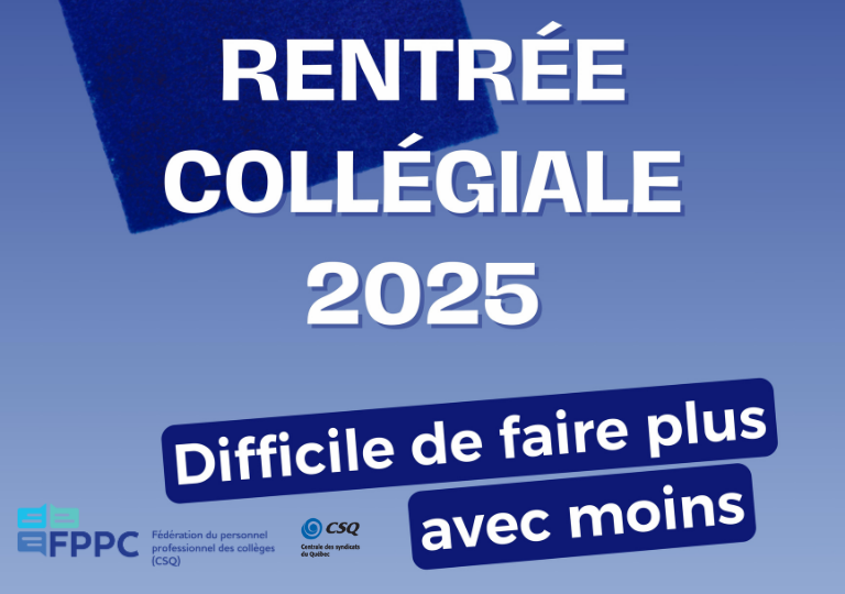 Face à cette situation, la Fédération du personnel professionnel des collèges (FPPC-CSQ) lance une campagne de mobilisation. Le personnel professionnel, reconnu pour son dévouement exemplaire, refuse de porter seul ou seule le poids de décisions qui fragilisent l’avenir de l’enseignement supérieur.